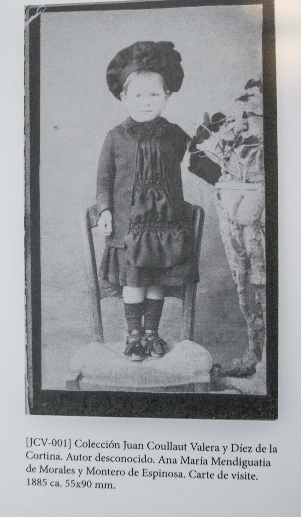 El libro de Oliver Tovar recoge ese marco general y lo aterriza en Marchena. A partir de colecciones privadas —como las de José Camacho Troyano o Juan Coullaut Valera— y de fondos familiares hoy muy dispersos, el autor sigue el rastro de las primeras cartes de visite conservadas en la localidad. Entre ellas destaca la delicada tarjeta de Ana María Mendiguatia de Morales y Montero de Espinosa, fechada hacia 1885 y con un tamaño de 55×90 mm, que resume a la perfección el estándar del género: una niña en pie, cuidadosamente vestida, apoyada en una silla y enmarcada en un cartoncillo negro con márgenes muy marcados. Esta y otras piezas permiten observar cómo la burguesía marchenera asumió rápidamente el nuevo lenguaje fotográfico.