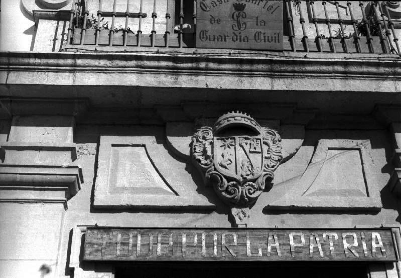 Podemos ver una foto del Palacio orgiinal gracias al blog memoria visual de Arahal. Esta era la puerta del Palacio.