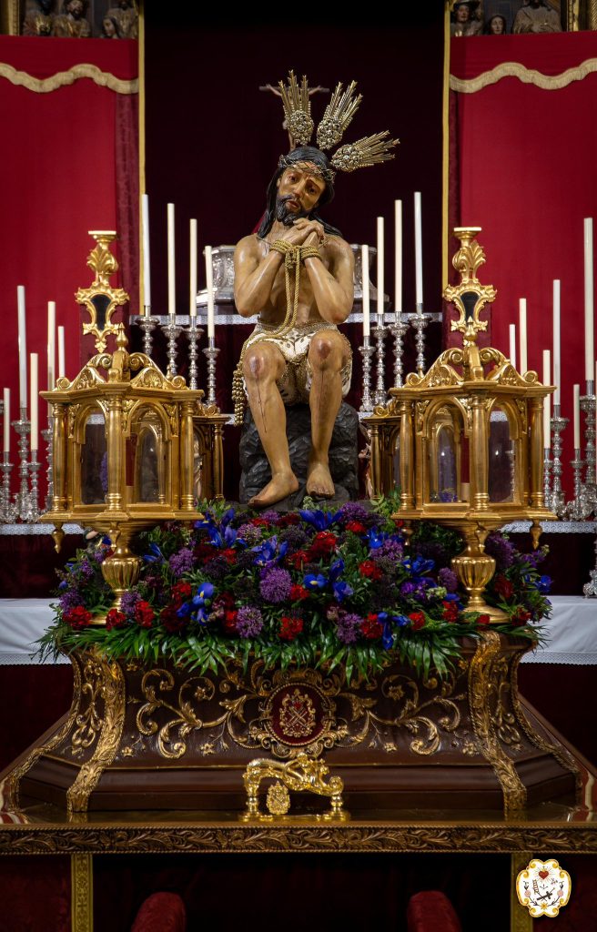 La imagen de Nuestro Padre y Señor de la Humildad y Paciencia se encuentra ya entronizada en sus andas para presidir el Vía Crucis que se celebrará esta noche con motivo del tercer viernes de Cuaresma en la Capilla de Santa Clara. El templo abrirá sus puertas a partir de las 18:30 horas, mientras que el rezo del Vía Crucis está previsto para las 20:00 horas.