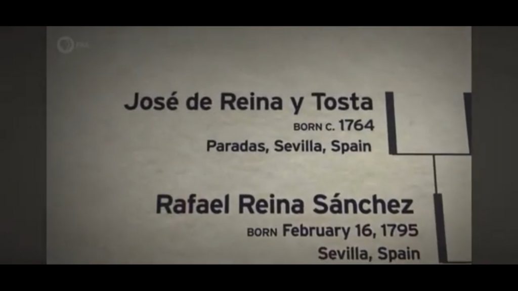 El hilo andaluz del relato televisivo se desplaza además hasta la Campiña sevillana. El genealogista Matthew Hovious, que participó en la investigación de esa rama familiar, afirma haber trabajado sobre la línea “Reina” y familias asociadas, y señala que José de Reina y Tosta fue bautizado en una iglesia de Paradas (Sevilla), localidad natal del padre del antepasado, mientras que la madre —siempre según su investigación— era hija de un funcionario destinado allí por un gran terrateniente andaluz, el Duque de Arcos.