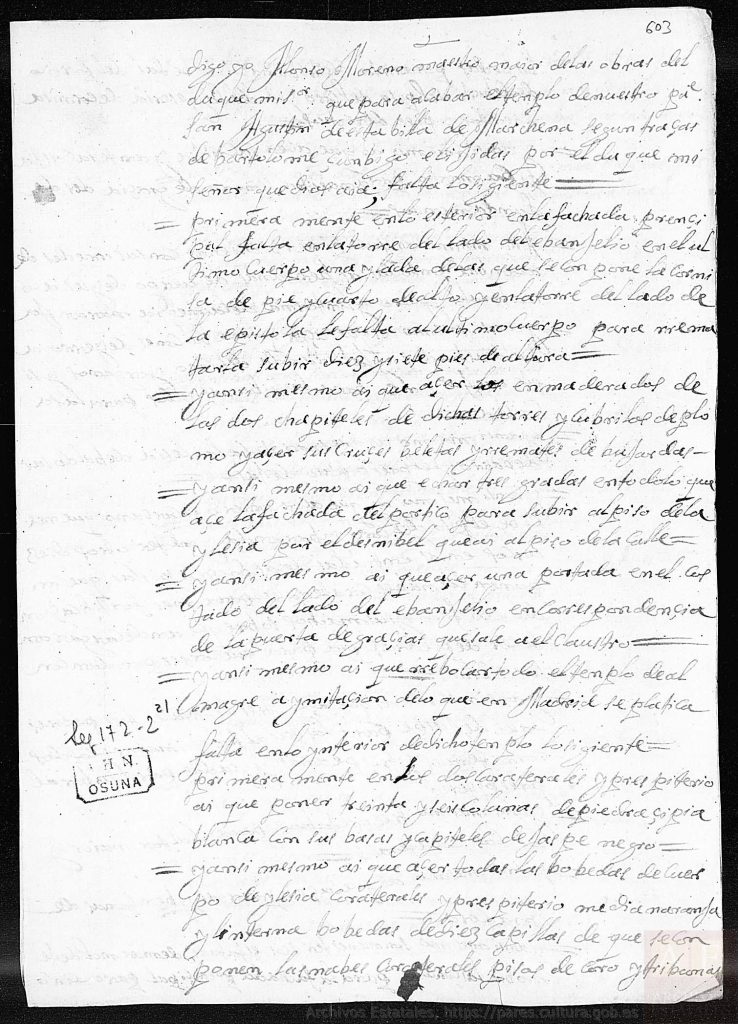 En 1682, Alonso Moreno se establece en Marchena hasta su muerte, dirigiendo las obras de la iglesia y de la reforma de la Plaza Ducal. El Duque pensó encargar a Luca Giordano un lienzo para el altar mayor pero no se hizo.
