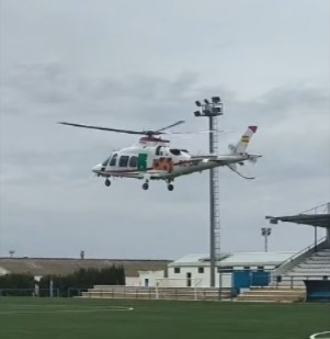 La Policía Local de Marchena habilita el campo de fútbol para el aterrizaje de un helicóptero sanitario y escolta el traslado urgente