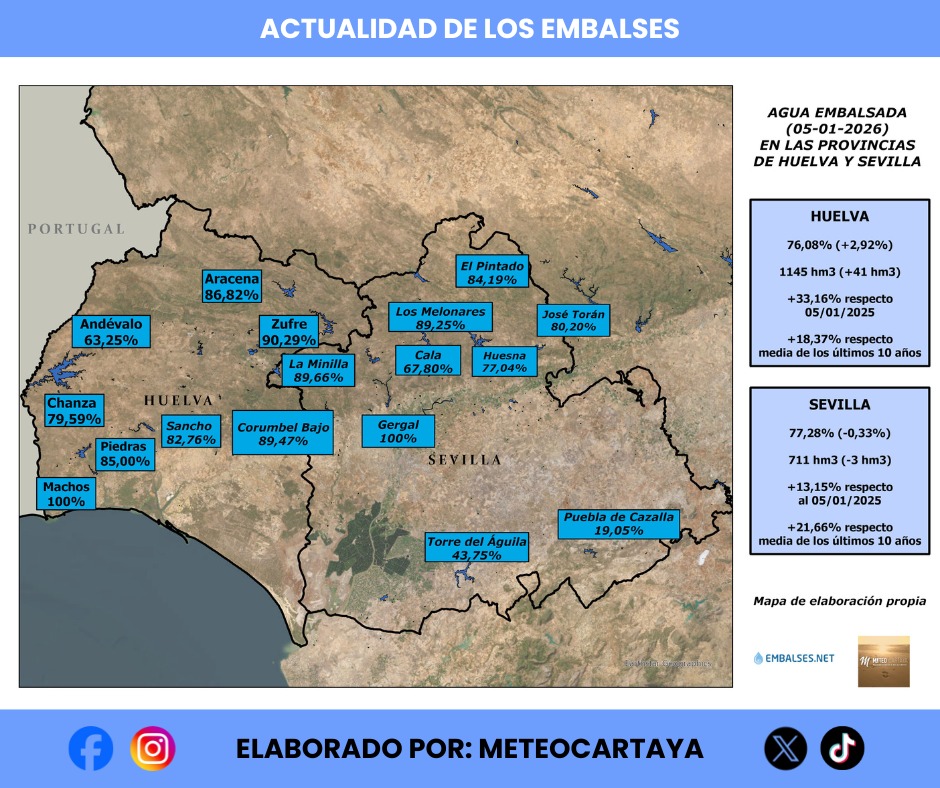 Los embalses de Sevilla y Huelva superan el 76% y encaran enero con niveles por encima de 2025