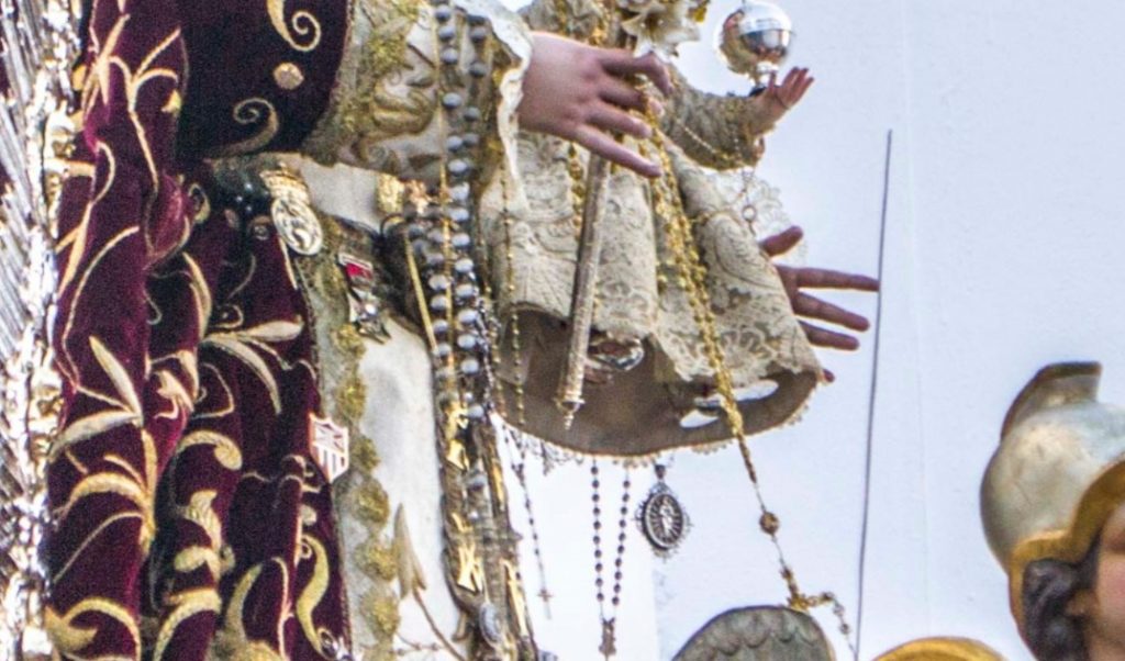 Históricamente, la devoción en lugares como Marchena, establecida desde 1556 , sirvió como sustrato para la posterior instrumentalización geopolítica. La Batalla de Lepanto en 1571 transformó la práctica, ya consolidada por la institucionalización dominica , en un símbolo de identidad y poder militar para la Contrarreforma.