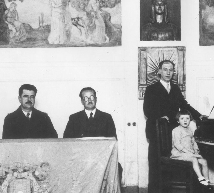 En la foto de portada vemos a José Salvador Gallardo presidiendo el Ateneo en 1934 junto al director musical del Ateneo José del Castillo Díaz, y Director de la Banda Provincial de Sevilla y primero en escribir las notas musicales en el himno de Andalucia. (Foto: ABC. 10 de Mayo de 1931).