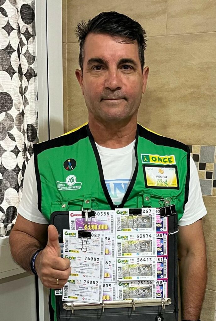 “La suerte vino donde estoy siempre desde las siete de la mañana”, contaba Pedro, con la satisfacción reflejada en su rostro mientras atendía, como cada día, uno de los bares que frecuenta como punto de venta. “Ya en la faena, como siempre”, decía entre saludos y felicitaciones de los clientes habituales.