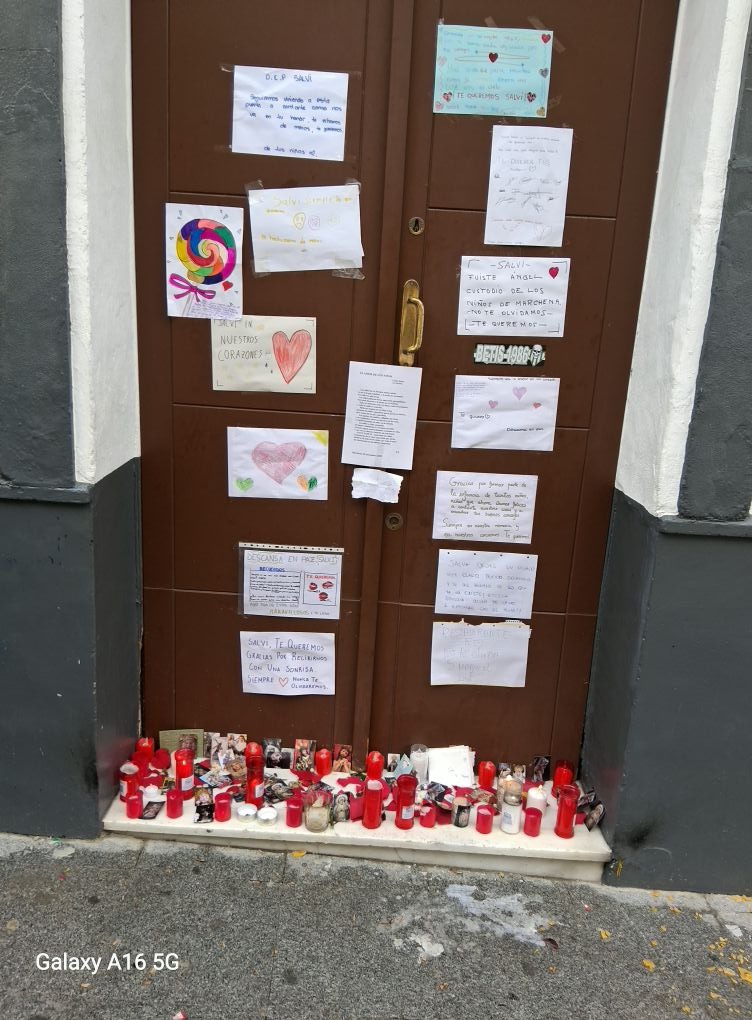 Grupos de escolares se han ido concentrando delante del local, algunos todavía con la mochila al hombro, para colocar mensajes y corazones de colores pegados en la puerta. A sus pies, decenas de velas rojas encendidas y pequeñas imágenes han creado un rincón de silencio en mitad de la calle, donde se suceden los minutos de recogimiento y los abrazos entre amigos y familiares.
